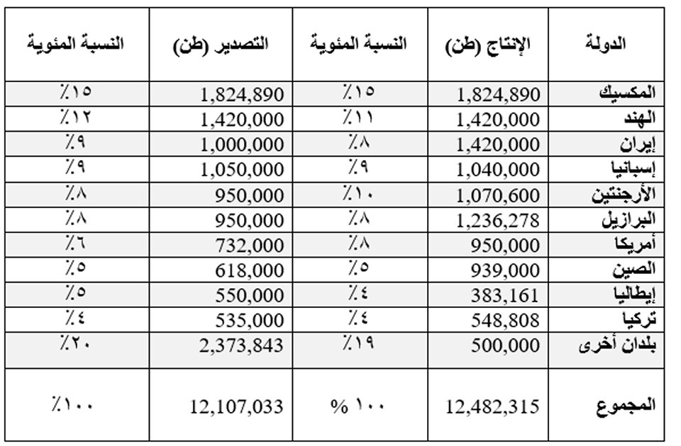 أكثر الدِوَل المنتجة لليمون في العالم 2003- 2004