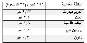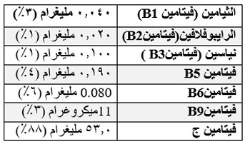 القيمة الغذائية لكل (100 جم) ليمون حامض بدون قشر: