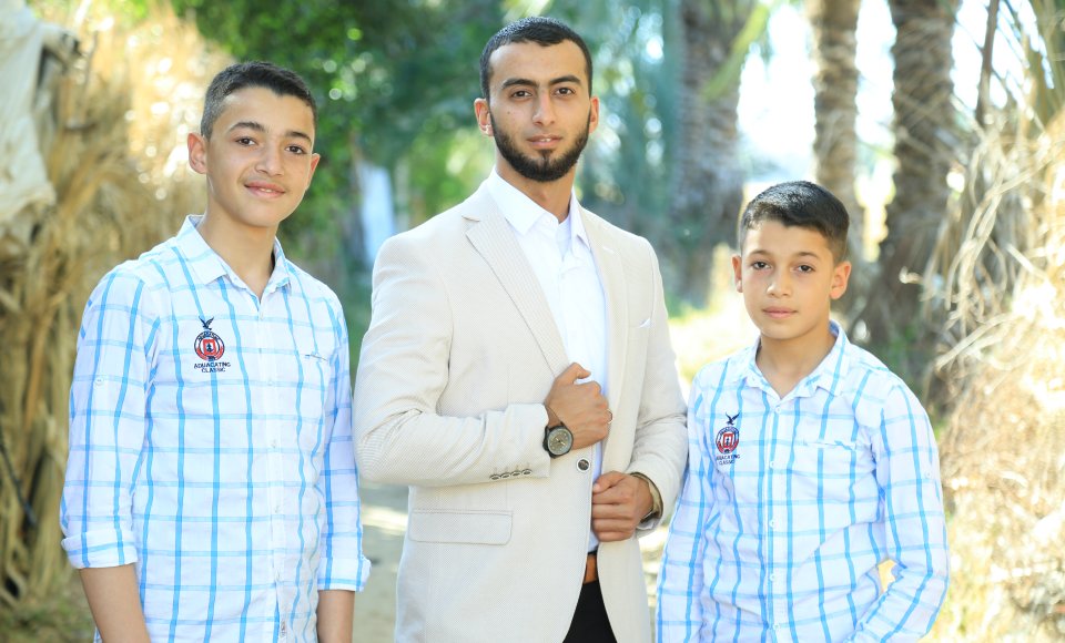 العريس يتوسط ابناء شقيقته يامن ومحمد رائد