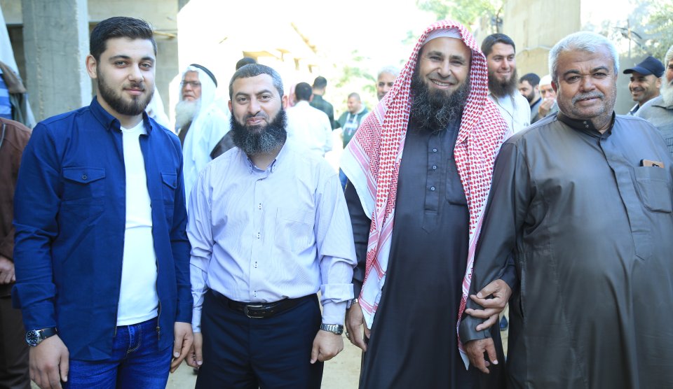 أ. سمير أحمد( خال العريس)، الشيخ ميسرة العبادلة( عم العروس)، أ. قصي فرج( ابن عم العريس)، أ. علي العبادلة( ابن عم العروس)