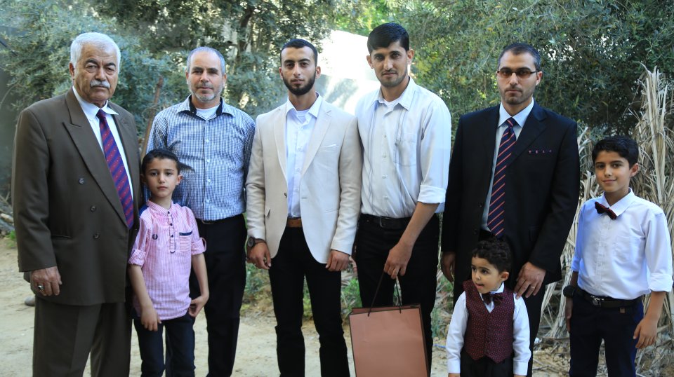 م. ناهض يوسف، د. عاطف عثمان الأغا، م. عودة محمد، أ. محمد فرج(ابن عم العريس)، العريس، أ. عثمان العبادلة، أ. نزيه محمد( عم العريس)، أ. سمير (خال العريس)