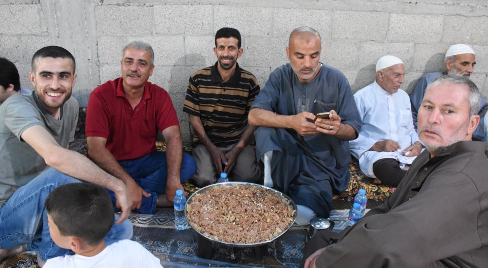 وقبل حوالي مايزيد على 65 عاماً كانت (أم علي) تؤكل فى وقت السحور فى ديوان الأغا( آل حمدان)، ويرجع تاريخها إلى نهاية القرن التاسع عشر (1895)، وكان يحضرها العشرات من المشايخ والمسافرين بين بلاد الشام وأرض الكنانة، ويمكثون منذ أذان العشاء يوم 28 رمضان وحتى قبل الفجر من ذكر وقراءة قران وصلاة وقيام، وكانت أمهاتنا وجداتنا رحمهن الله جميعاً يقمن بخبز الفطائر على (الصاج)، ويحلبن الحليب (الأبقار والأغنام)، ويستخدمن السمن البلدي.
