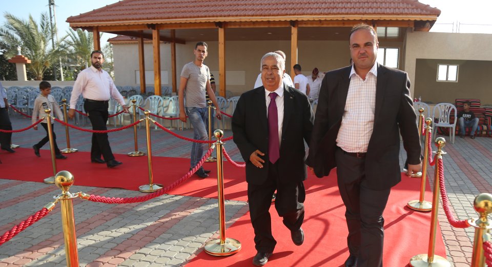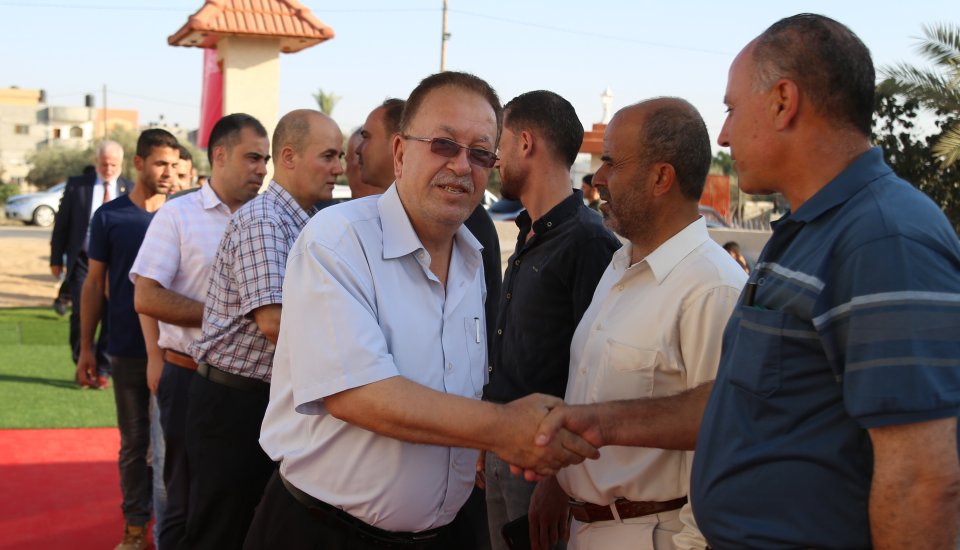 أ. سليم طاهر، م. علاء الدين البطة(رئيس بلدية خان يونس)، د. هيفاء الأغا(وزيرة شؤون المراة )، أ. ابراهيم أبو النجا (محافظ غزة)، د. أحمد الشيبي محافظ خان يونس)، المختار الحاج وديع الأغا، الوزير عبدالكريم أبو صلاح