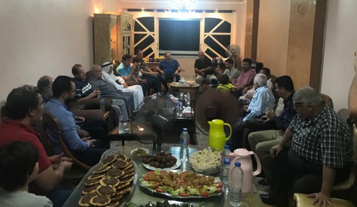 أ. معيد جمال الأغا، أ. سامي محمد طاهر الأغا (قادما من السعودية)، الحاج أبوبلال الأغا، اللواء نوفل جندية، أ. محمد حاسي الأغا ونجلة حاسي