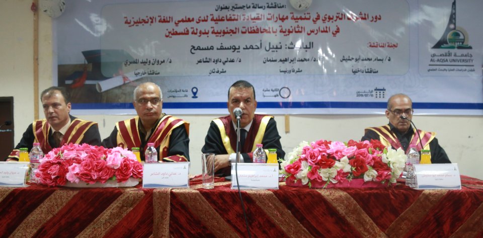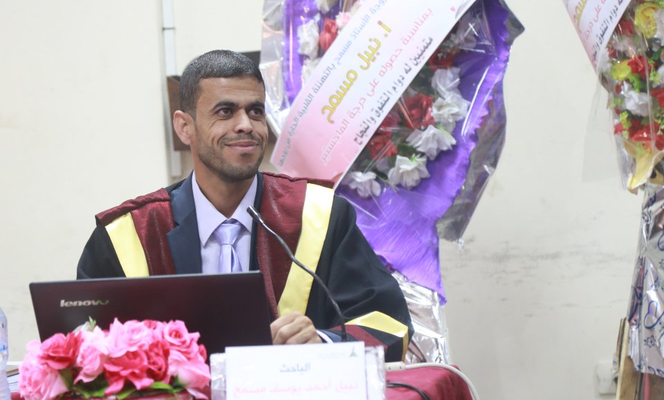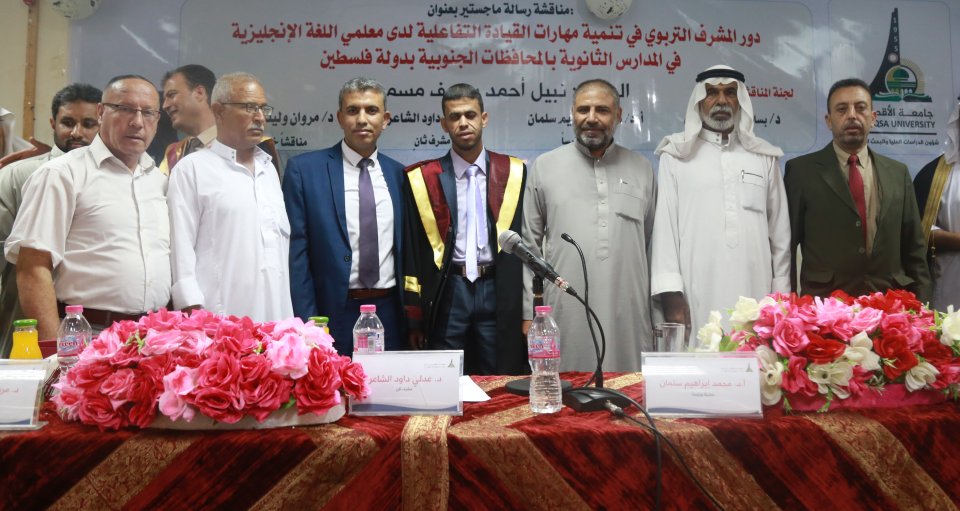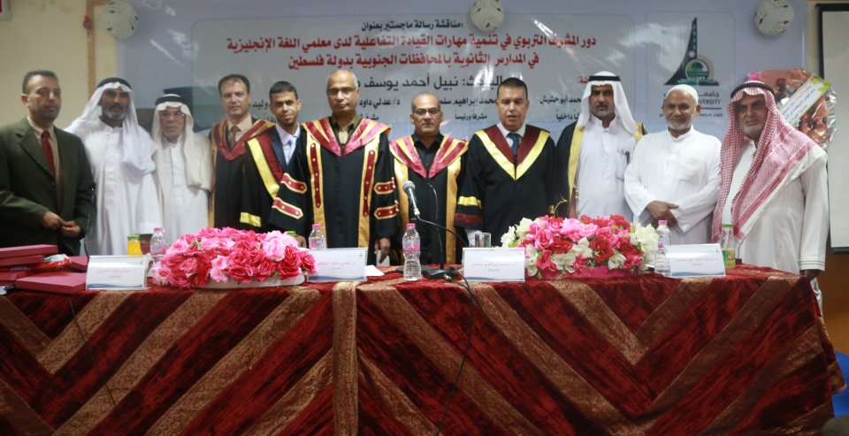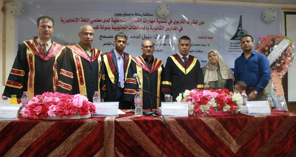 حصول الطالب نبيل مسمح على درجة الماجستير وكانت الرسالة بعنوان دور المشرف التربوي في تنمية مهارات القيادة التفاعلية لدي معلمي اللغة الإنجليزية في المدارس الثانوية بالمحافظات الجنوبية بدولة فلسطين