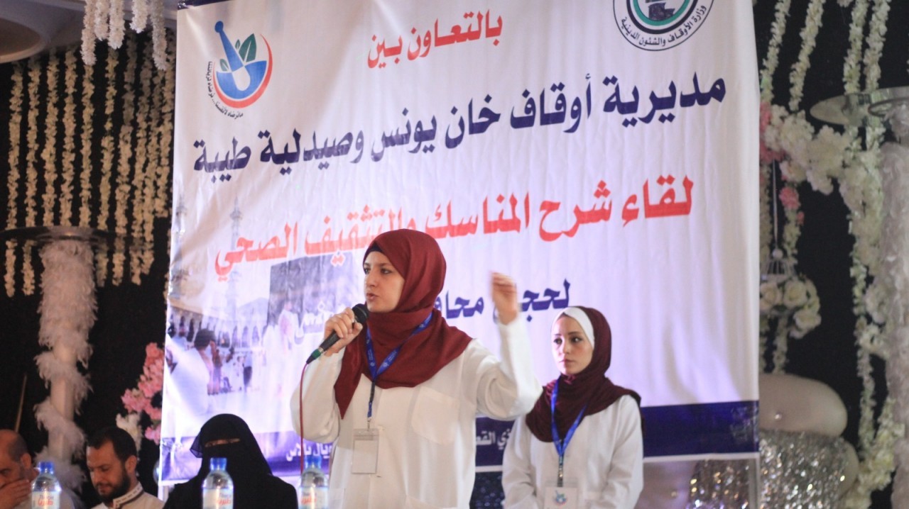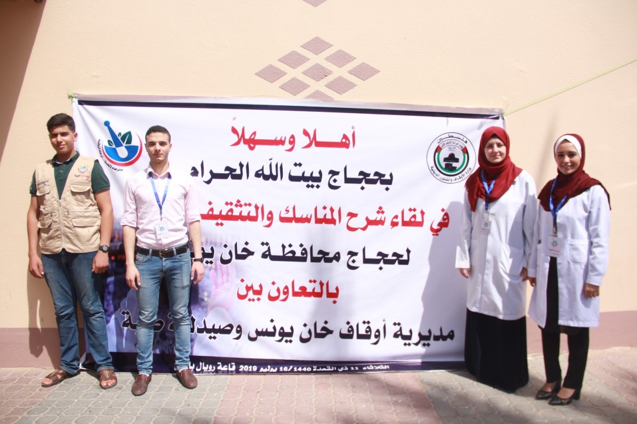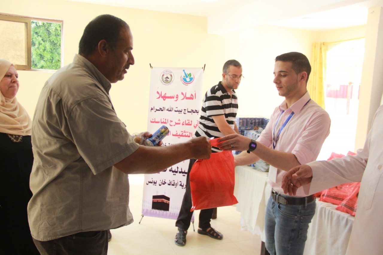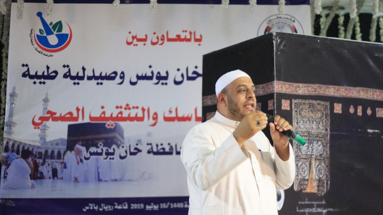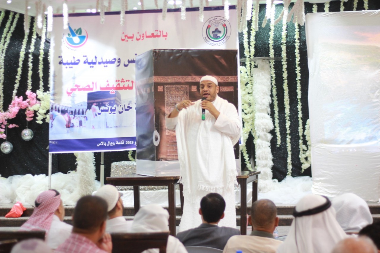 عقدت مديرية اوقاف خان يونس وبالتعاون مع صيدلية طيبة – خان يونس يوم الثلاثاء الموافق 11 ذي القعدة 1440 / 16 يوليو 2019 في قاعة رويال بالاس لقاء شرح المناسك والتثقيف الصحي وذلك بحضور د. محمد صالح الغلبان مدير اوقاف خان يونس وفضيلة الشيخ محمد ابو عامر رئيس قسم الوعظ والارشاد وفضيلة الشيخ د. عبد القادر ابو عبدو ممثلا عن وزارة الاوقاف.