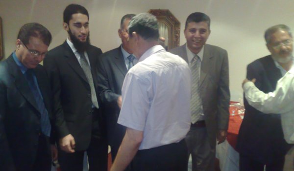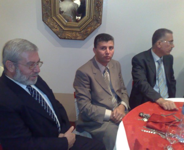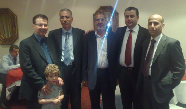 الحاج حسين عبدالله الأغا، الأخ اسماعيل رمضان "أبو أحمد"، حسام عثمان، والد العريس،