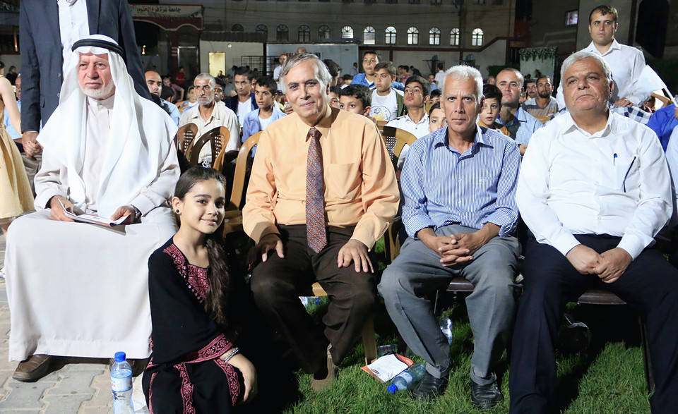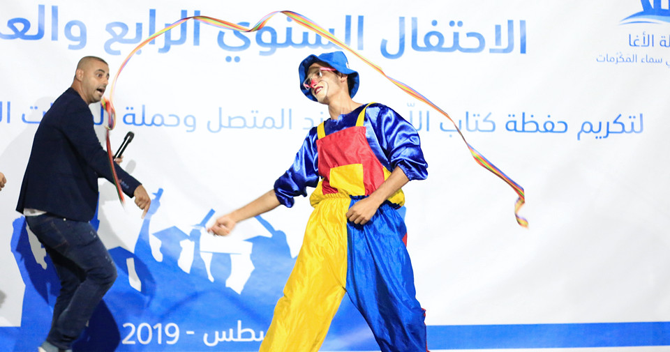 موسى منهل والقران الكريم خلال حفل تكريم متفوقي المرحلة الإبتدائية لعائلة الأغا 2019