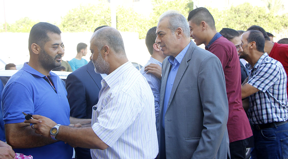 يزن الفرا، أ.د عبد الخالق الفرا(رئيس جامعة الأزهر)، أ. عادل أبو شعبان(إبنة عمة العريس)