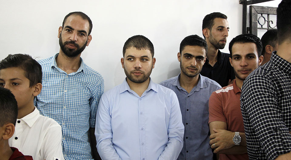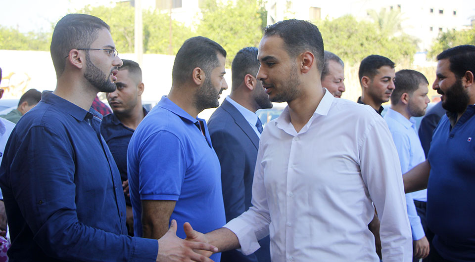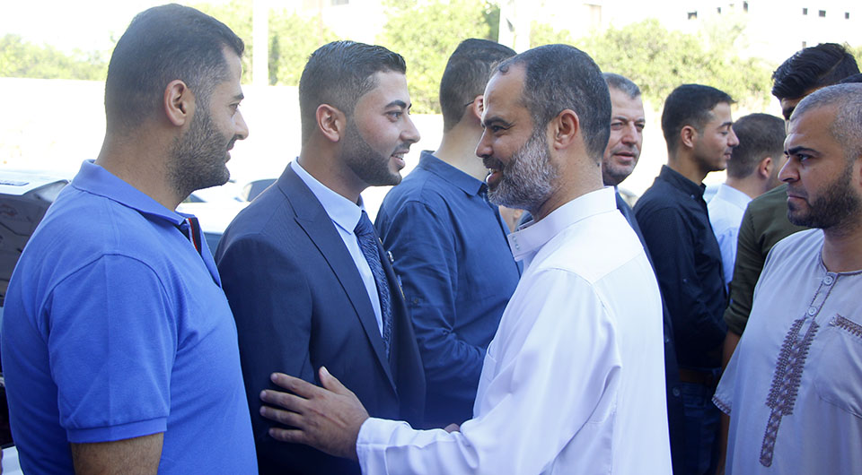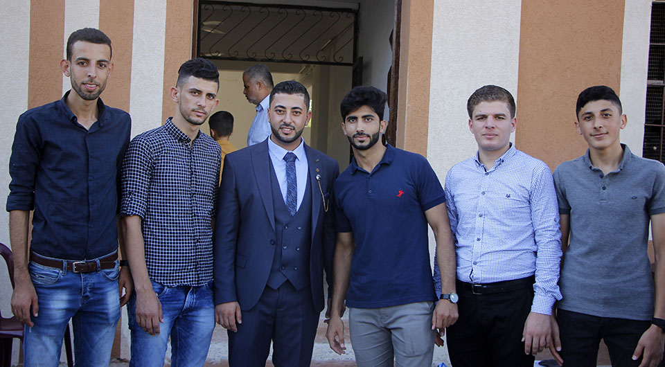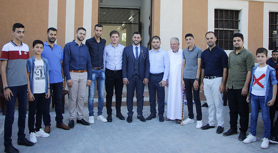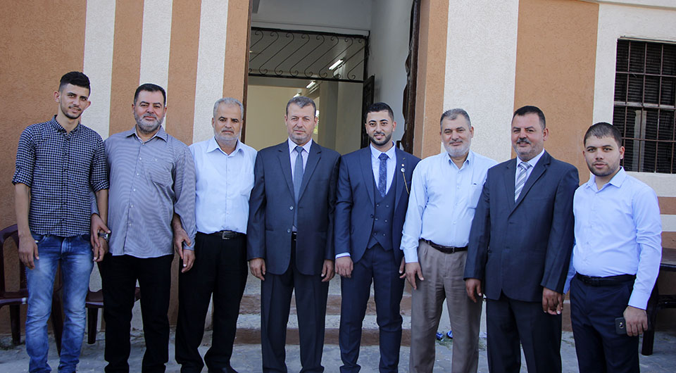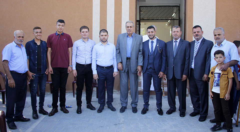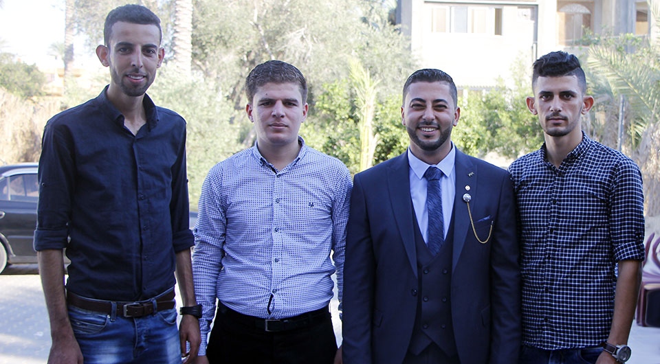 محمد إحسان(إبن خالة العريس)، أ. محمد(شقيق العروس)، م.خليل زقوت، العريس، أ. أحمد إحسان(إبن خالة العريس)، م. أحمد يحيى