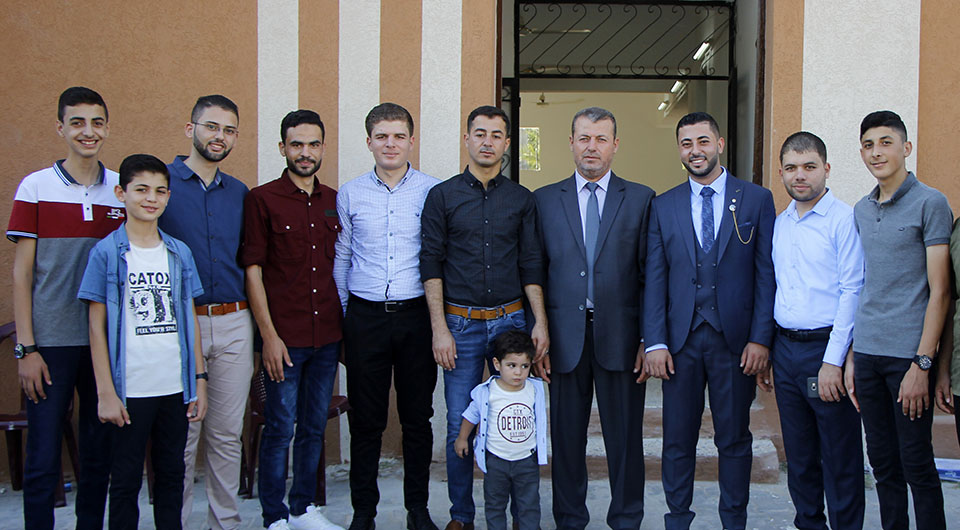 أ. إياد سعيد(عم العروس) ونجليه سعيد وسراج، أ. محمد يحيى، العريس، الحاج حمتو قاسم، أ. أحمد منهل، أ. أحمد سعيد(عم العروس)