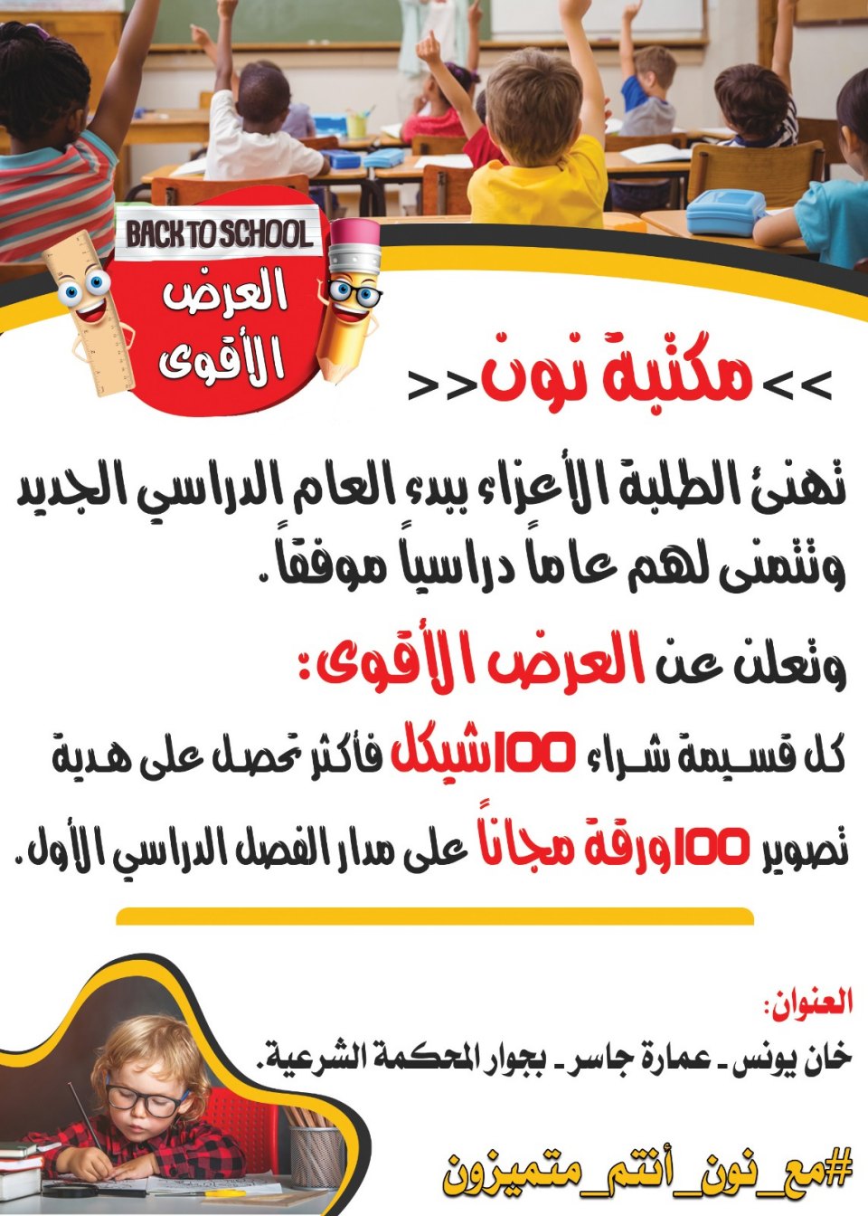 الرئيسة/إعلانات /مكتبة نون إعلانات مكتبة نون تاريخ النشر : الأربعاء | 28-08-2019 | 16:25 3862 اضغط هنا للتواصل أو التعرف على أ. نادر إيهاب نظام سعيد حمدان الأغا يمكنك تلقي أحدث الأخبار أول بأول بانضمامك لإحدى مجموعات الواتساب الخاصة بالعائلة من خلال الضغط هنـا اظهر المزيد