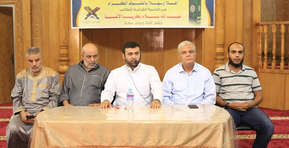 وكان قد أقيم قبل عدة أيام ختمة حفظ كتاب الله تعالى للطالب عبدالله بمسجد أبي حميد، وفي كلمة أمير المسجد الأستاذ يحيى الأسطل الذي رحب بالحضور وباستضافة هذه الختمة في رحاب مسجد أبو حميد أكد على فضل حفظ كتاب الله تعالى وشرف حملته، أما إمام المسجد الأستاذ عبدالعال الأسطل فقد أثنى على الجهود الطيبة التي بذلت على مدار سنوات في صحبة كتاب الله حتى وصل إلى هذه اللحظة المميزة داعيا الطلبة إلى مزيد من الجهد للحاق بركب الحفظة.