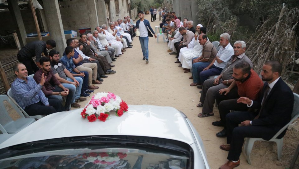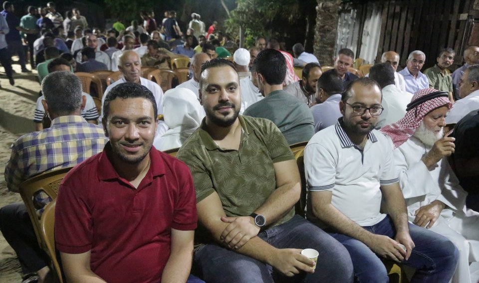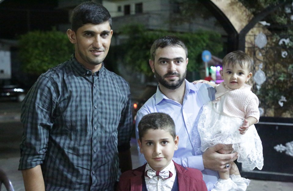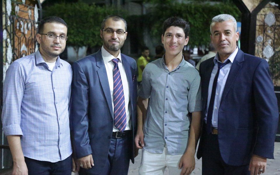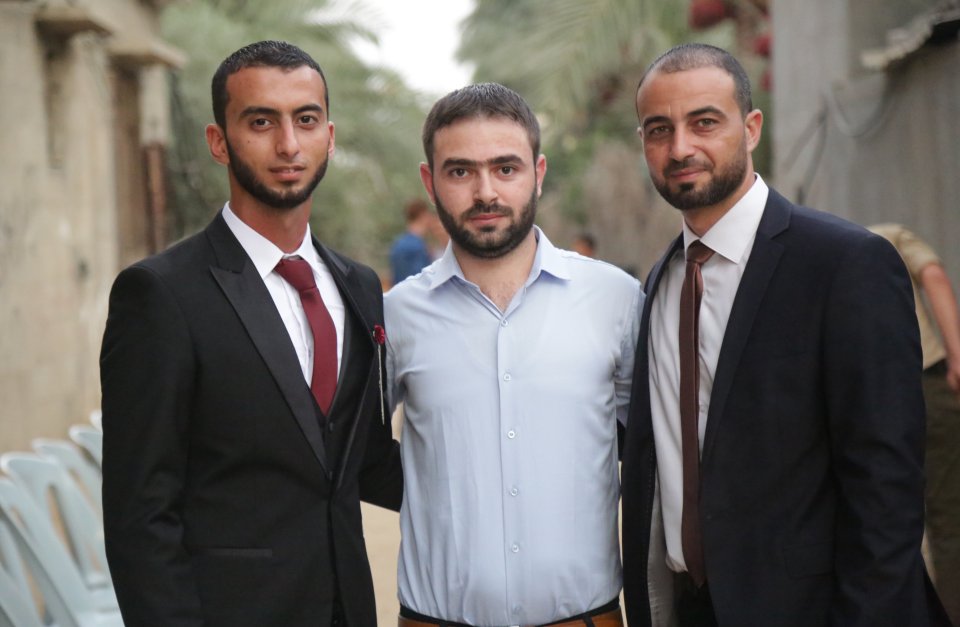 أ. سعد بلال(شقيق العروس)، أ. جميل الأسطل( عديل العريس)، أحمد بلال أبو العز (شقيق العروس)