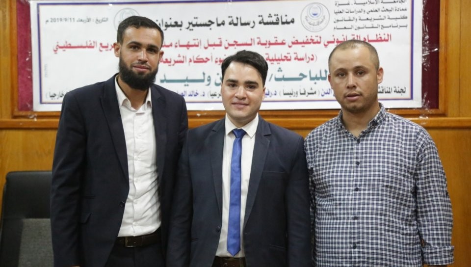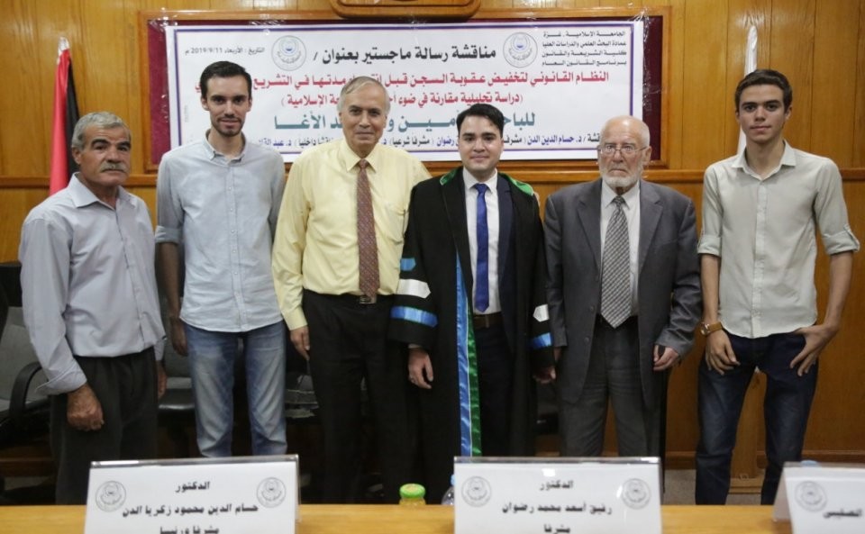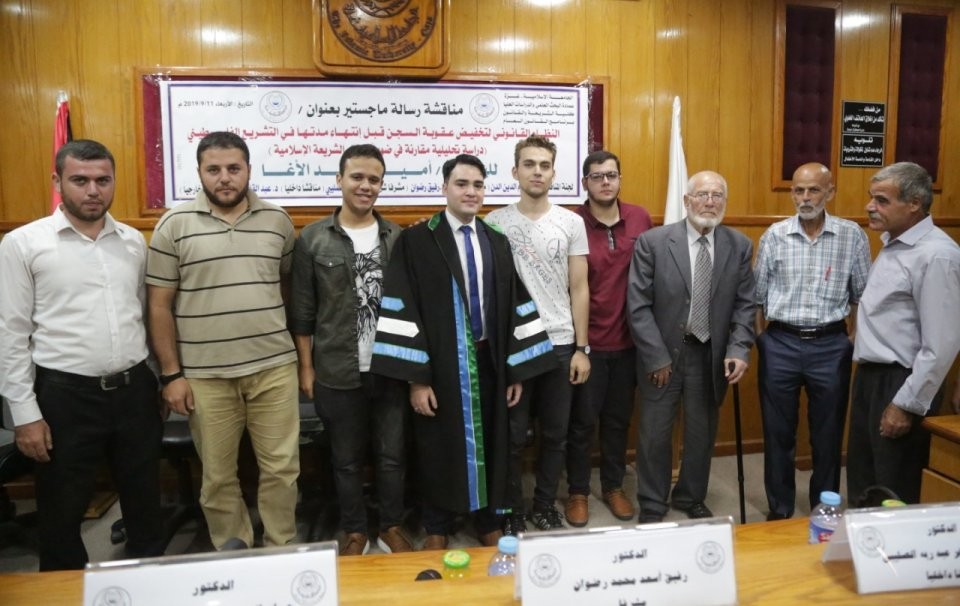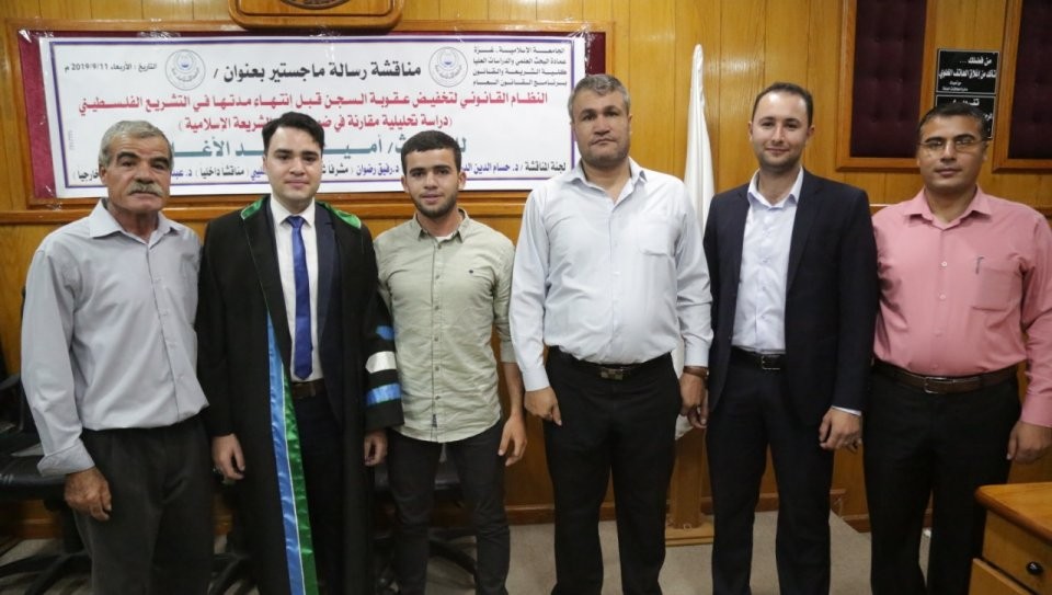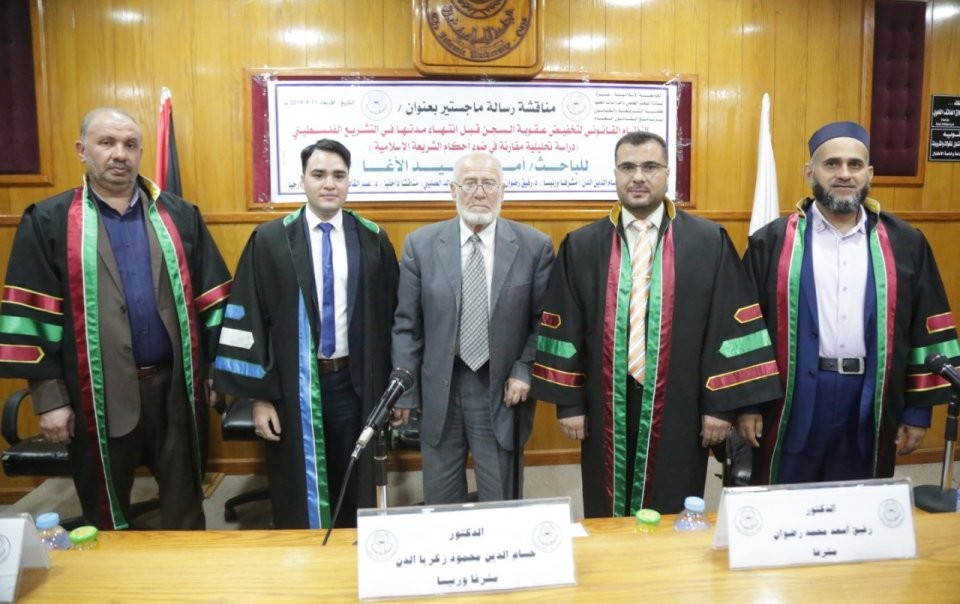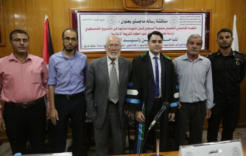 الجامعة الاسلامية - غزة مناقشة رسالة الماجستير للباحث أ.أمين وليد الاغا بعنوان: النظام القانوني لتخفيض عقوبة السجن قبل انتهاء مدتها في التشريع الفلسطيني (دراسة تحليلية مقارنة في ضوضاء الشريعة الاسلامية، وتكونت لجنة المناقشة من د.حسام الدين الدن،(مشرفا ورئيسا)، د.خالد الصليبي،(مناقشا داخليا)، د.عبد القادر جرادة ،(مناقشا خارجيا)، والف مبارك.