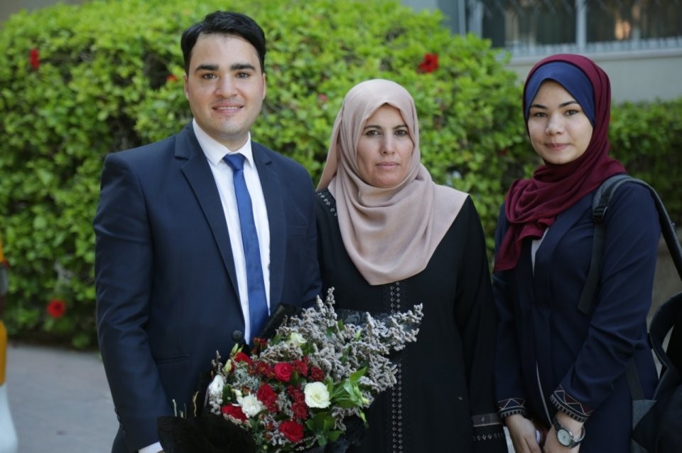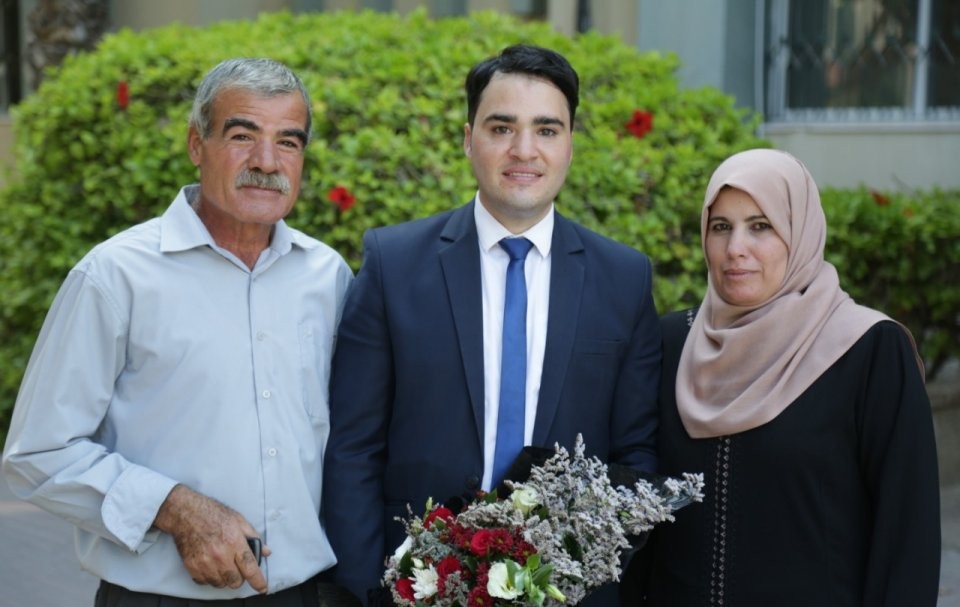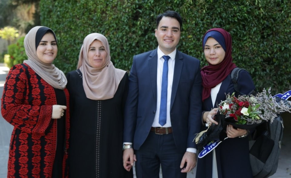 الخريج يتوسط عائلته، أ.ايمان، والدة الباحث، أ. فاتن