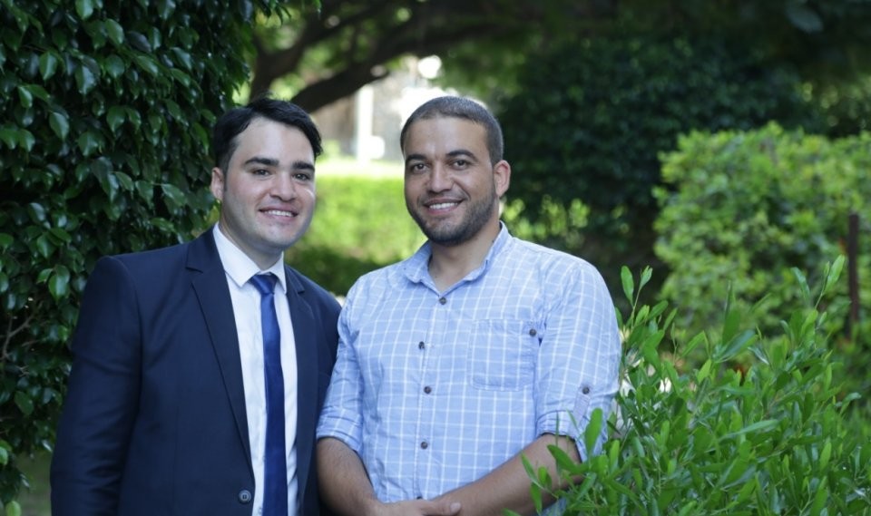 أ. عمر عودة والباحث يتوسط لجنة المناقشة