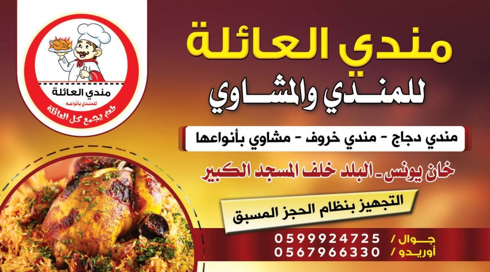 الرئيسة/إعلانات /مندي العائلة إعلانات مندي العائلة تاريخ النشر : الإثنين | 14-10-2019 | 20:11 6398 مندي العائلة للمندي والمشاوي اضغط هنا للتواصل أو التعرف على أ. عبدالرحمن براء يوسف عنتر شاكر الأغا يمكنك تلقي أحدث الأخبار أول بأول بانضمامك لإحدى مجموعات الواتساب الخاصة بالعائلة من خلال الضغط هنـا اظهر المزيد