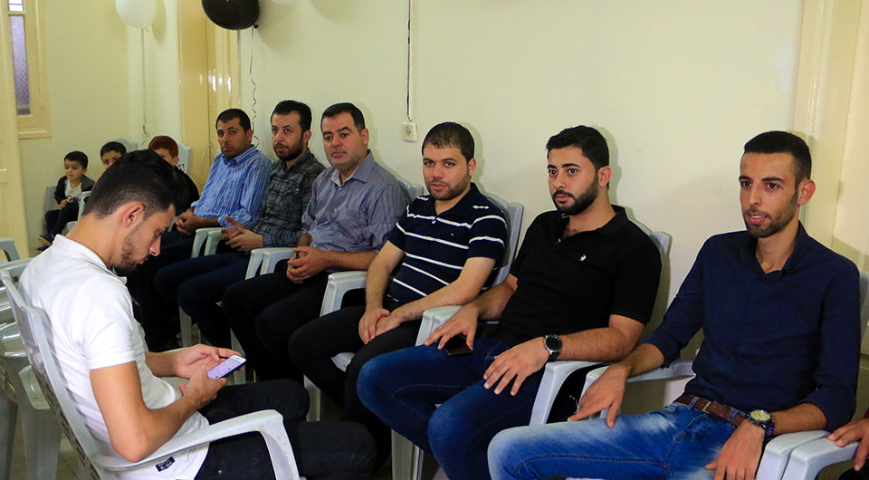د. بهاء الدين ونجله يحيى، أ. أحمد يونس وشقيقه أ. وسام، أ. إياد سعيد، والد العريس، أ. محمد جواد، أ. أحمد إحسان