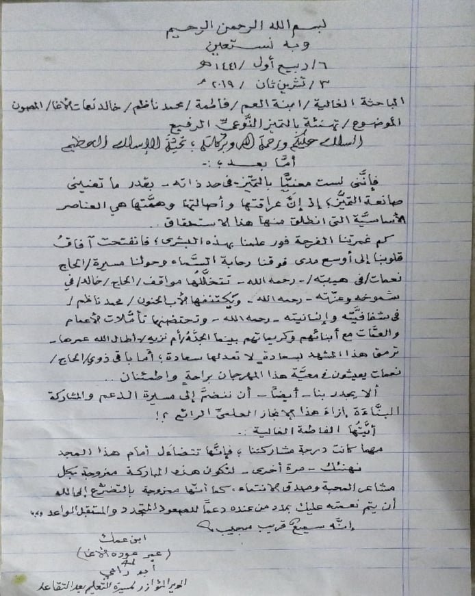 الرئيسة/متفرقات/تهنئة من أ. ابو رامي للباحثة فاطمة محمد ناظم متفرقات تهنئة من أ. ابو رامي للباحثة فاطمة محمد ناظم تاريخ النشر : الإثنين | 04-11-2019 | 12:41 2794 اضغط هنا للتواصل أو التعرف على أ. فاطمة محمد ناظم خالد نعمات الأغا يمكنك تلقي أحدث الأخبار أول بأول بانضمامك لإحدى مجموعات الواتساب الخاصة بالعائلة من خلال الضغط هنـا اظهر المزيد