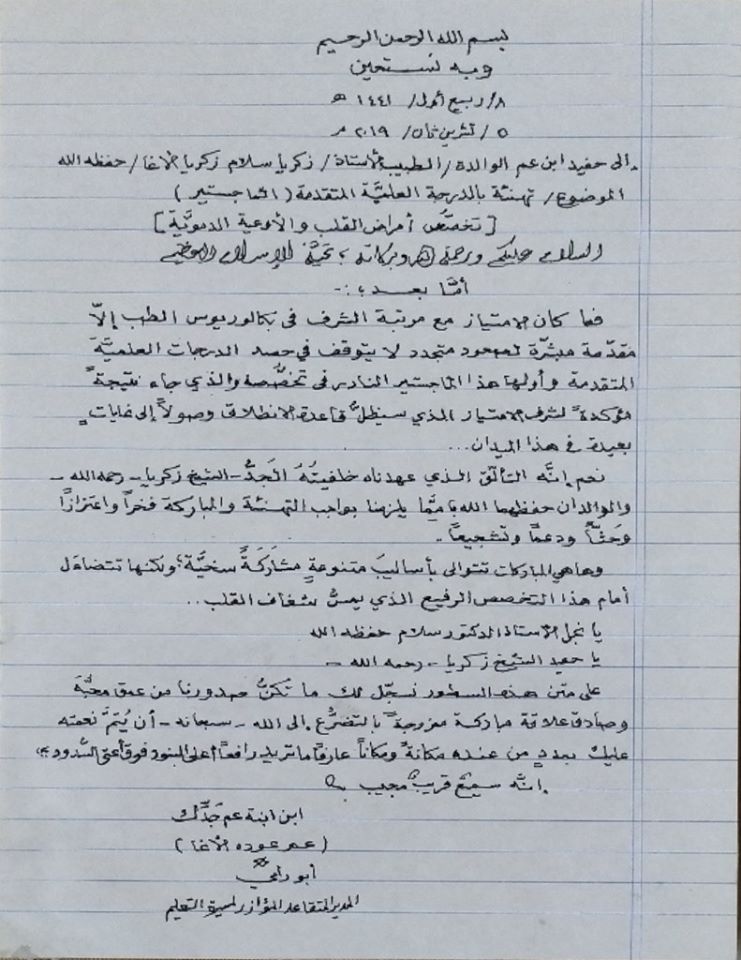 القاهرة- حصول الباحث زكريا سلام الأغا على ماجستير في القلب والاوعية الدموية من كلية طب القصر العيني جامعة القاهرة