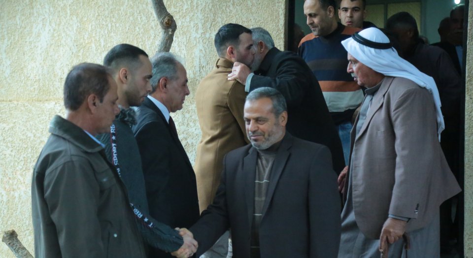 المستشار عزام الأسطل، والد العريس، أ. عبد العزيز يوسف