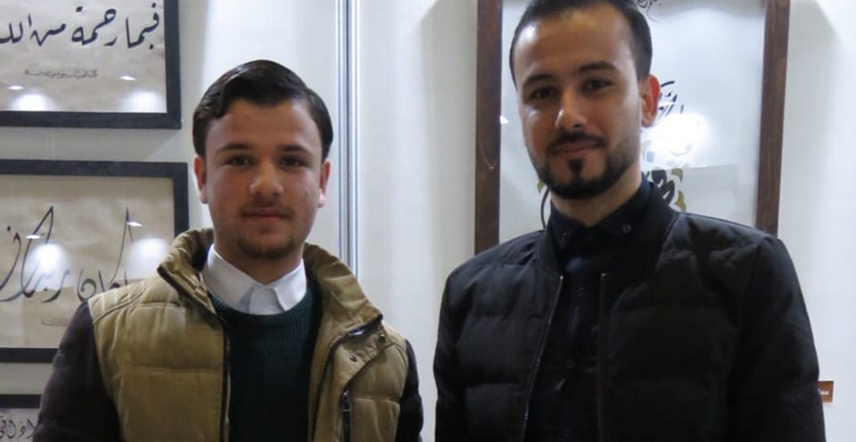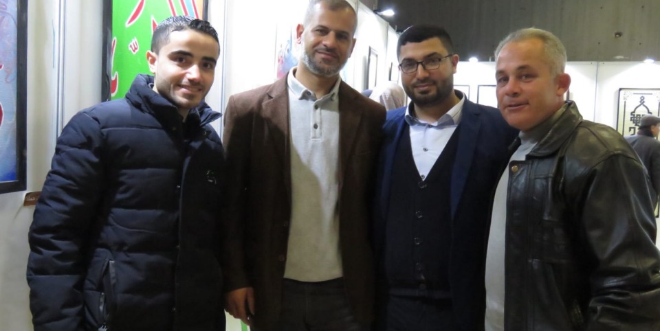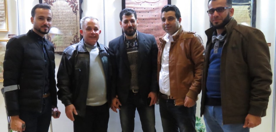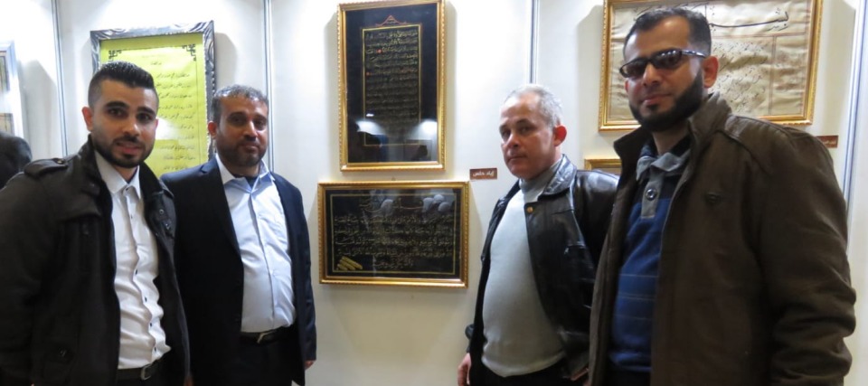 مديرة قرية الفنون والحرف أ. نهاد شقليه ، الخطاط أ. زين الأسطل ، الخطاط أ. بلال عدنان الأغا ، الخطاط أ. علي شراب