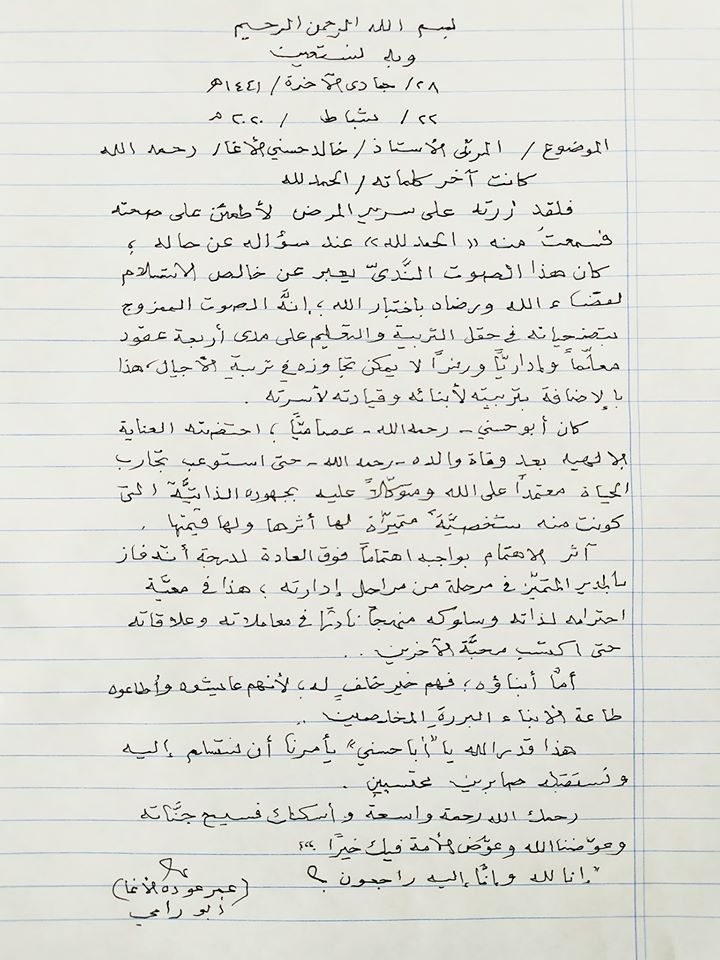 - أ. محمد زوجته: دانه عبدالسلام خالد محمد سالم محمد سالم عبدالعال إبراهيم حسن محمد أحمد شبير