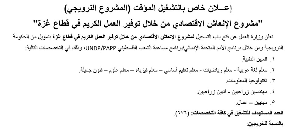 الرئيسة/إعلانات /اعلان خاص بالتشغيل المؤقت- مشروع نرويجي إعلانات اعلان خاص بالتشغيل المؤقت- مشروع نرويجي تاريخ النشر : السبت | 22-02-2020 | 23:18 3421 يمكنك تلقي أحدث الأخبار أول بأول بانضمامك لإحدى مجموعات الواتساب الخاصة بالعائلة من خلال الضغط هنـا اظهر المزيد
