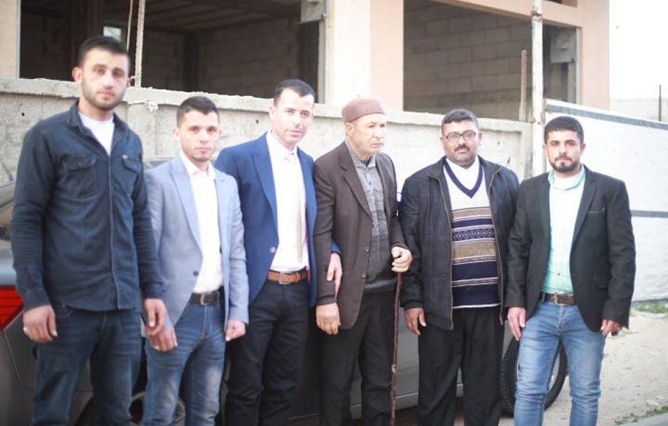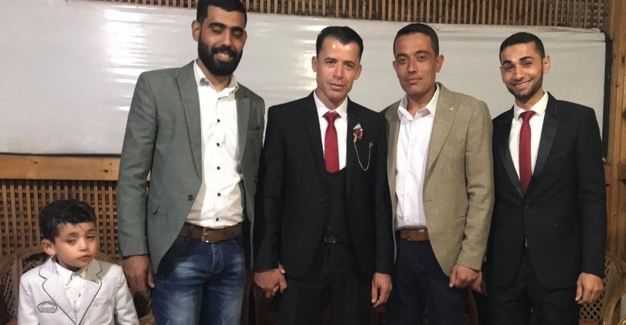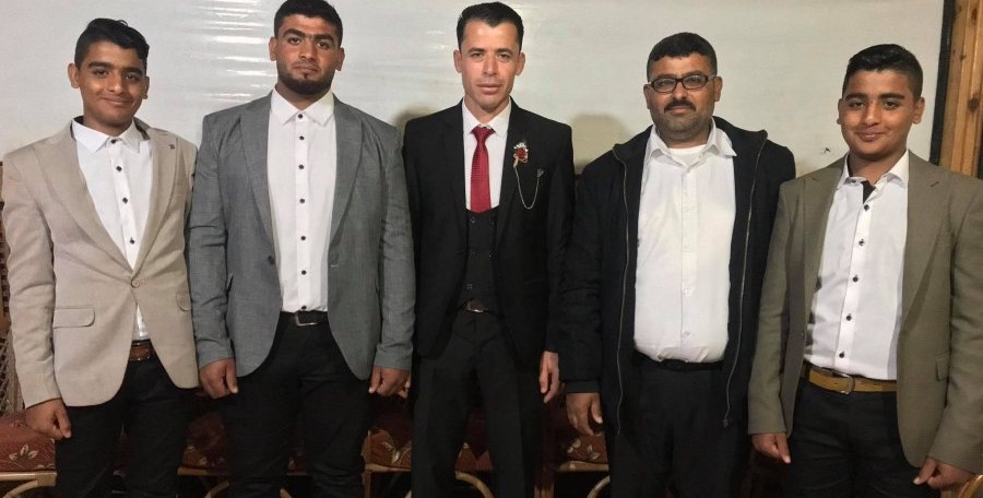 أ. قتيبة ، والد العروس، أ. مصطفي نشاصي(عديل العريس)، أ. محمد الفرا (عديل العريس)، د. قتادة (شقيق العروس)، د. محمد (شقيق العروس)، عدي نشاصي