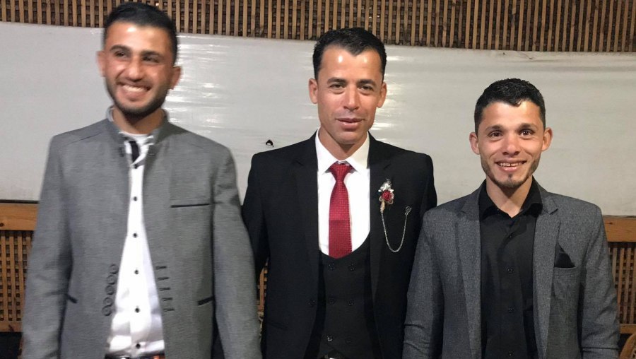 العريس، د. محمد ابو جامع (شقيق العروس)، د. قتادة أبو جامع (شقيق العروس)، أ. محمد الفرا