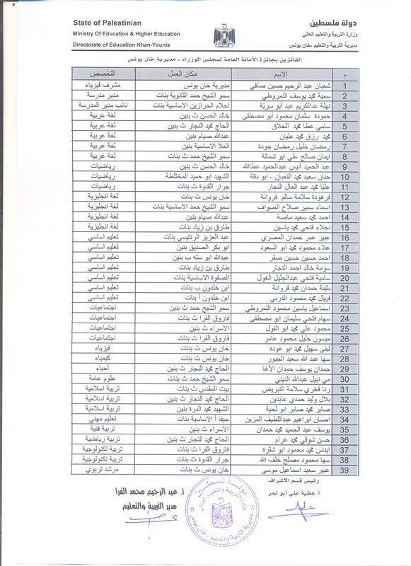 للعام الدراسي2019-2020م، على مستوى مبحث العلوم الحياتية في مديرية التربية والتعليم خان يونس والف مبارك.