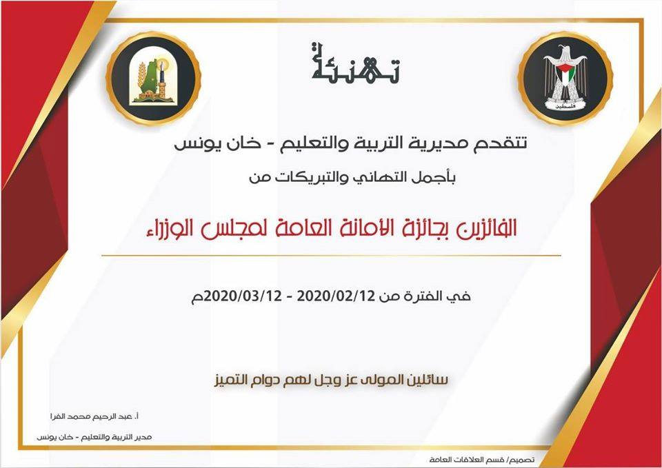 الأستاذ حمدان يوسف الاغا يفوز بجائزة الأمانة العامة لمجلس الوزراء