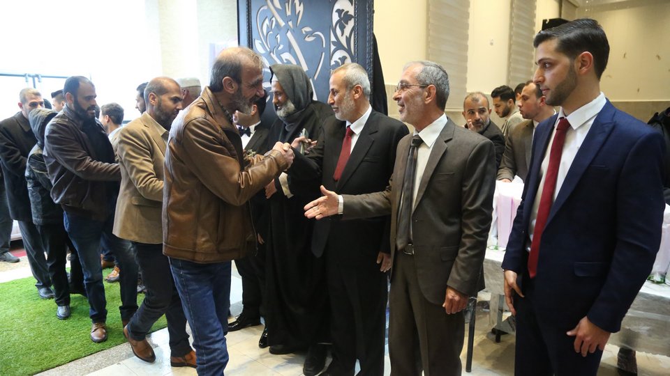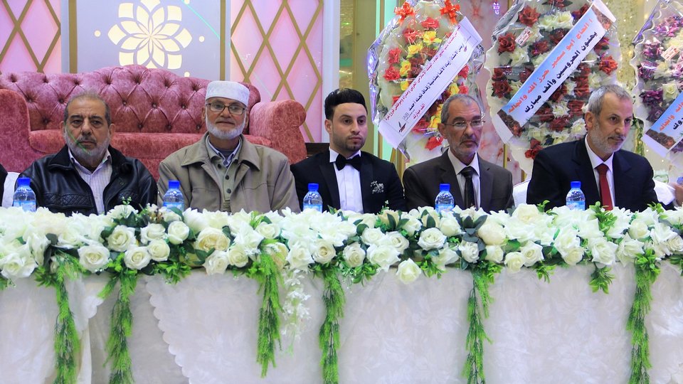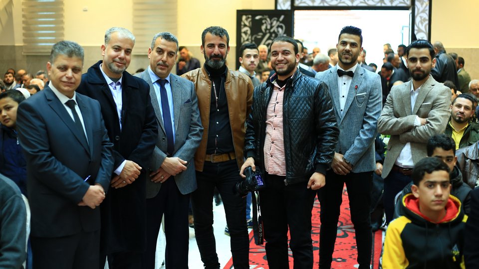 الحاج اياد أحمد خالد(والد العريس)، أ.أسامة مهدي(والد العروس)، العريس، الحاج منير(عم العريس)، الحاج نظام(عم العروس)