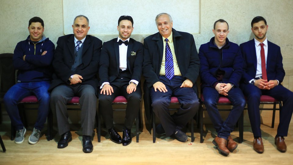 العريس، أ.عمر جودت، الحاج إياد أحمد، أ.سالم تميم، أ.رامي أحمد(عم العريس)، محمد، محمود(شقيقا العريس)