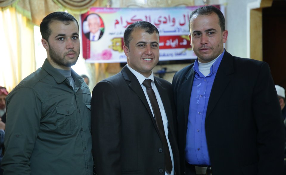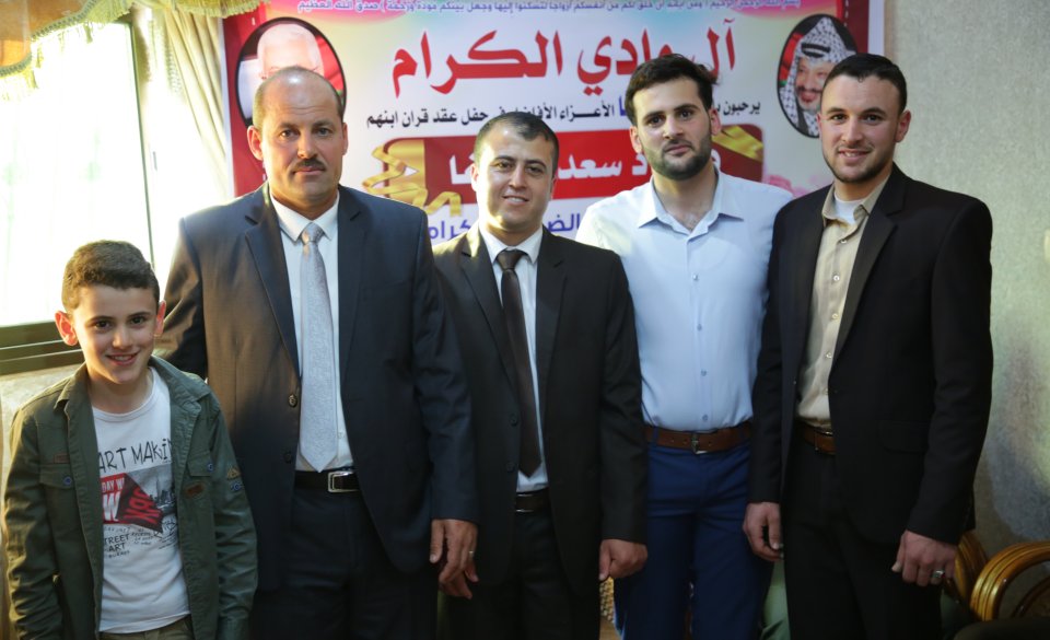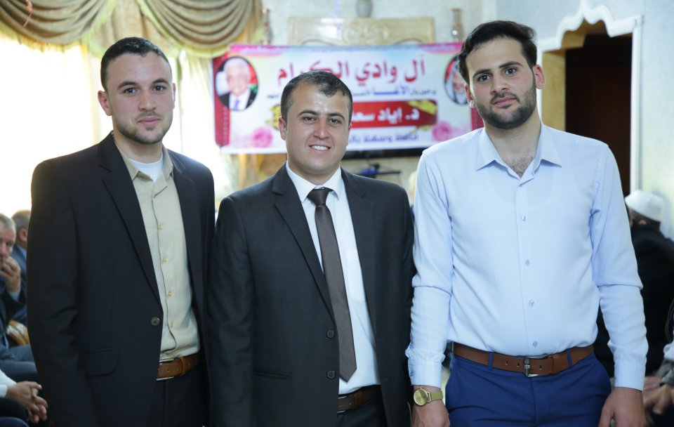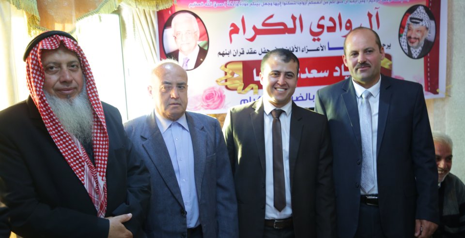 أ. عدي (شقيق العروس)، أ. نظام فايز وادي، العريس، والد العروس ونجله أ. عزام