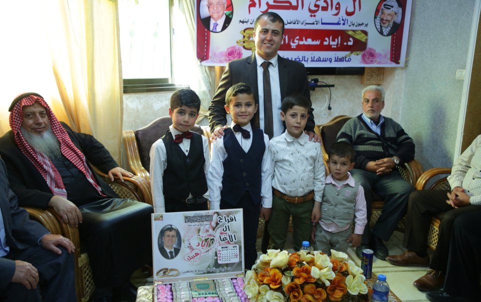 اخوال العروس أ. فرج عزمي وادي، أ. ضياء عزمي وادي، العريس، والد العروس، أ. عمار عزمي وادي