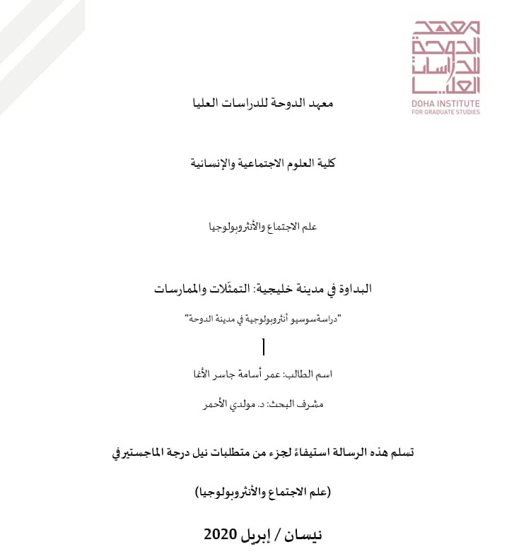 الدوحة- نال أ.عمر اسامة الأغا درجة الماجستير بامتياز في علم الاجتماع والأنثروبولوجيا من كلية العلوم الاجتماعية والإنسانية بمعهد الدوحة للدراسات العليا وذلك عن رسالته البداوة في مدينة خليجية: التمثلات والممارسات تحت إشراف د. مولدي الأحمر، والف مبارك.