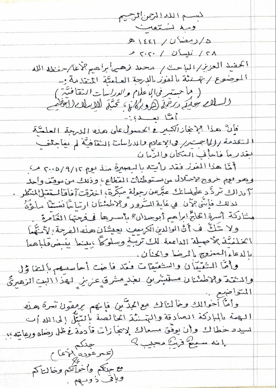 الدوحة- منح الباحث أ. محمد زهير الأغا درجة الماجستير في كلية العلوم الاجتماعية والإنسانية برنامج الإعلام والدراسات الثقافية معهد الدوحة للدراسات العليا وكان عنوان الرسالة العنف الثقافي في السينما العربية- دراسة في الأنماط والممارسات إشراف عماد بن العبيدي وألف مبارك.