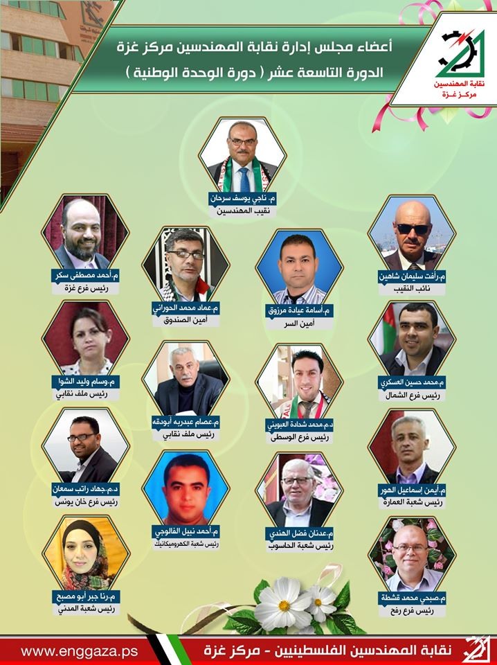 تسلم مجلس نقابة المهندسين الدورة (19) مهامه بعد اعتماده والمصادقة عليه من وزارة العدل، حيث تم تشكيل هذا المجلس بتوافقٍ وطنيٍ ضم غالبية الكتل النقابية والمهنية التابعة للفصائل الفلسطينية والمهندسين المستقلين، وشاركت في تشكيل هذا المجلس حركة حماس، وحركة الجهاد الإسلامي، والجبهة الشعبية لتحرير فلسطين، والجبهة الديمقراطية لتحرير فلسطين، وممثلون عن المهندسين المستقلين، ويتكون المجلس النقابي الجديد من (15) عضواً يرأسهم نقيب المهندسين م.ناجي يوسف سرحان؛