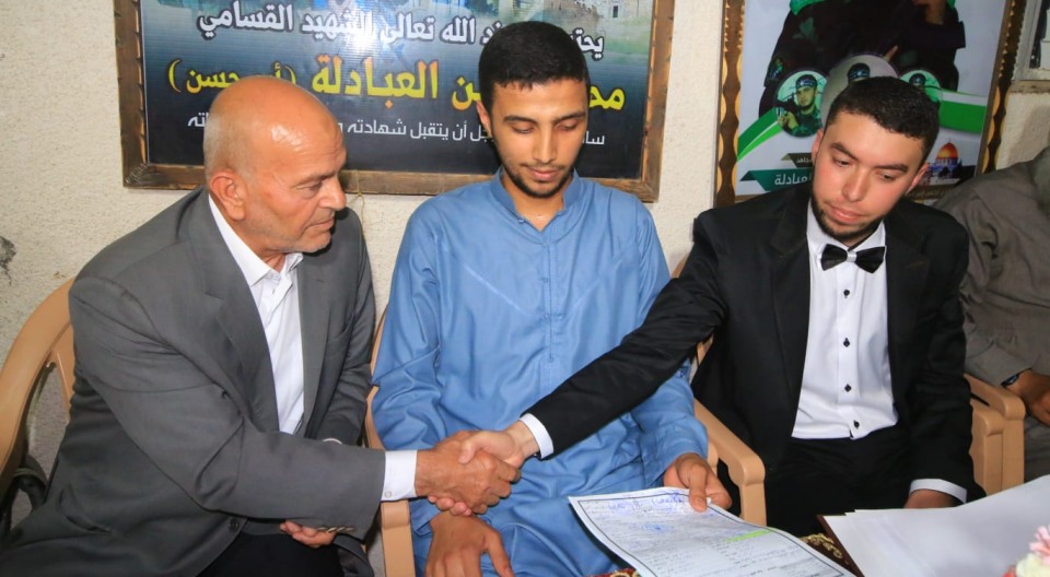 يوسف العبادلة، صالح العبادلة، عزام العبادلة، العريس، والد العروس، نائل الأسطل، شقيق العروس براء