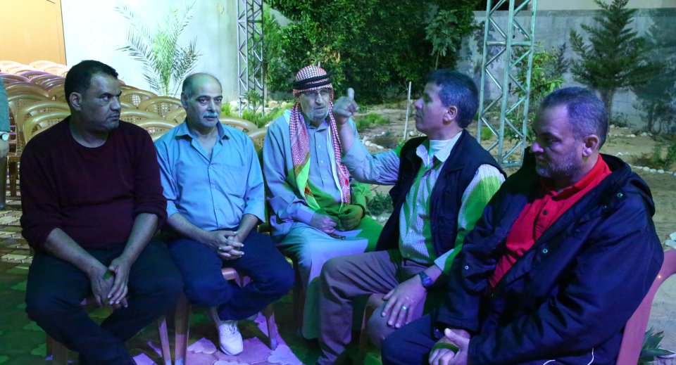 والد العروس، العريس، الحاج اياد أحمد خالد(عم العريس)، الشيخ منهل (عم العريس)، أ. يحيي سليمان(عم العروس)، أ. شادي أحمد (عم العريس)