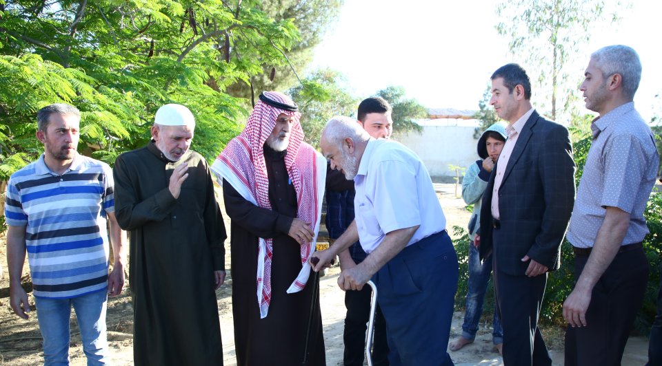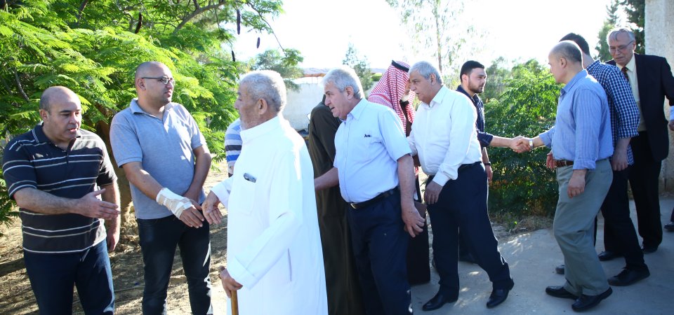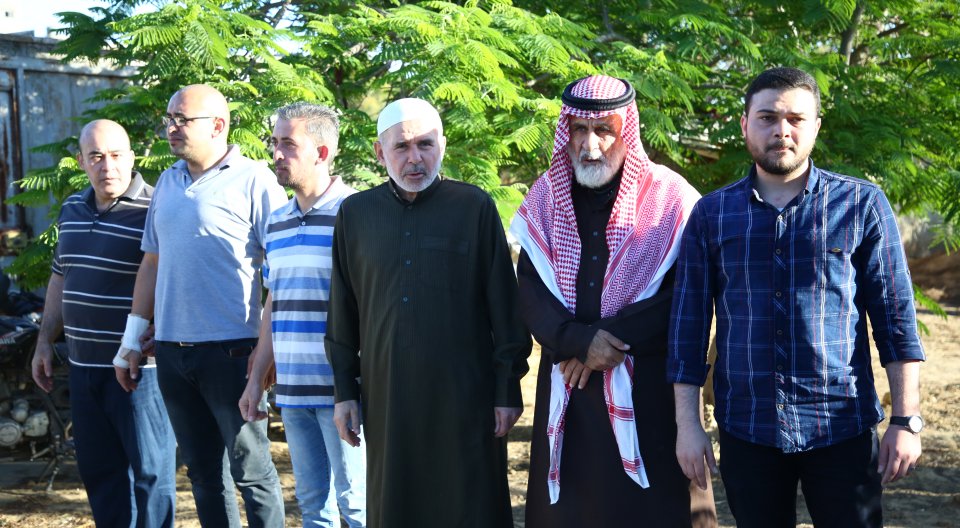 أ. عبدالرحمن وجيه حفيد الفقيد ، أ. عبدالكريم صقر، د. وجيه صقر زوج كريمة الفقيد، (أ. سلام زكريا، أ. قاسم جهاد، السيد يحيى زكريا ) أنجال شقيقي الفقيد
