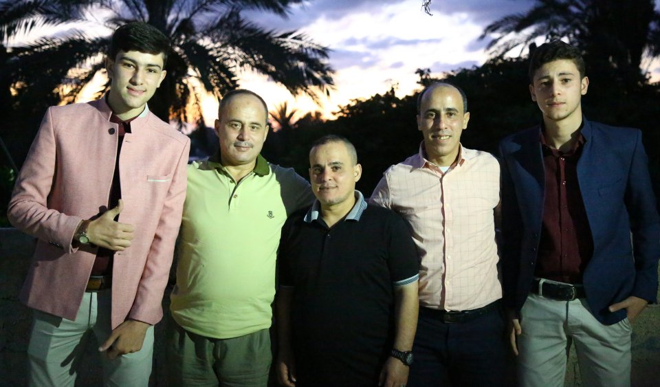 العريس يتوسط عائلته، أ. رياض، أ. محمد، والد العروس، والد العريس، أ. أكرم، أ. اسامة