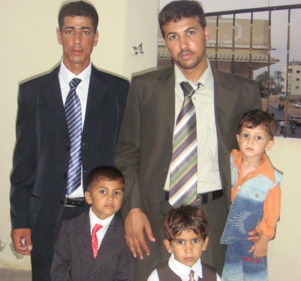 السادة: أحمد وعثمان(شقيقا العريس)، العريس، على اللحام(زوج شقيقة العريس)، والد العريس