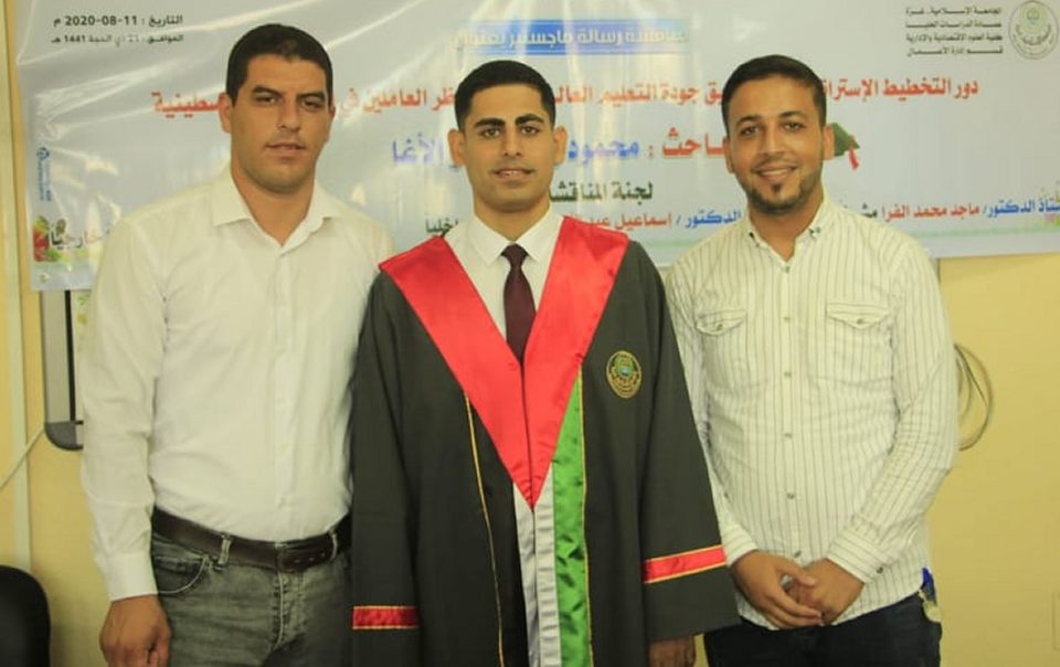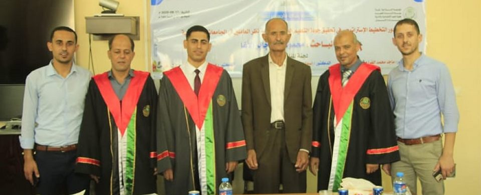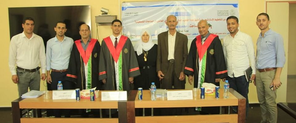 الجامعة الاسلامية: الحمدلله الذي بنعمته تتم الصالحات الحمدلله على التمام والكمال تم بحمد الله مناقشة أطروحة الماجستير الموسومة بعنوان دور التخطيط الاستراتيجي في تحقيق جودة التعليم العالي من وجهة نظر العاملين في الجامعات الفلسطنية،وتم منحي درجة الماجستير في ادارة الاعمال.