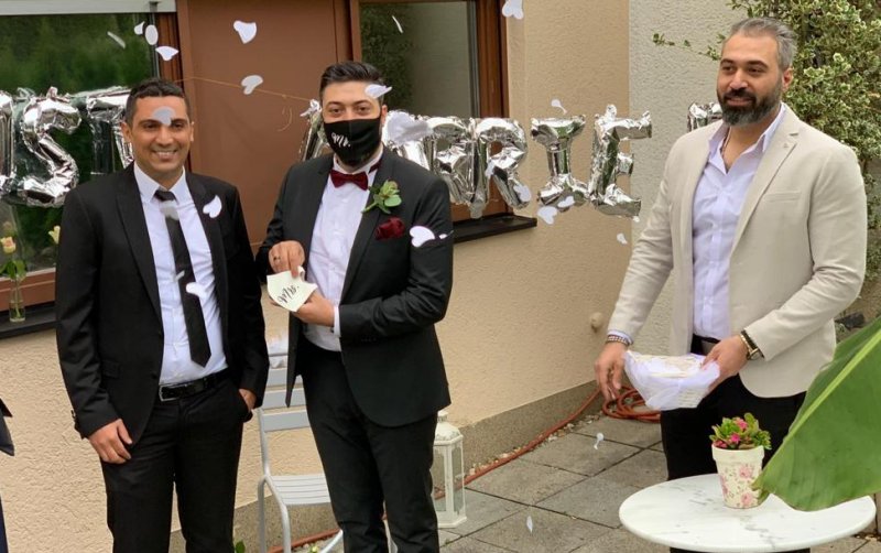 ألمانيا- السبت- الموافق- 2020-09-26 تم بحمد الله وتوفيقه زفاف المهندس علاء حمدان حلمي يوسف قاسم الأغا إلى الآنسة سارة أيمن حمتو قاسم محمد قاسم الأغا ، وألف مبارك