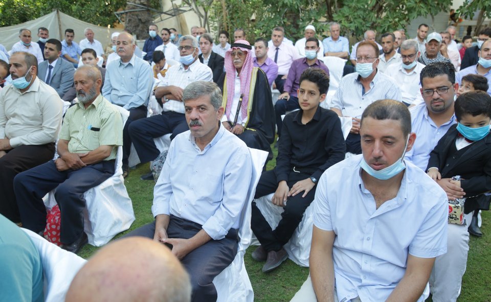 الحاج أبو داود بكري، والد العروس، الحاج رمضان وافي، العريس، د.جمعة وافي، أ.عدنان وافي، والد العريس، م.عبدالله وافي