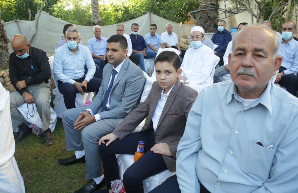 أ.بلال عودة (صهر العريس)ونجله محمد، العريس، والد العروس، أ.أكمل أحمد(عم العروس)