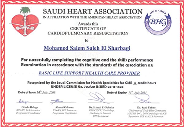 صورة شهادة عضوية الجمعية السعودية الأمريكية لأمراض القلب
